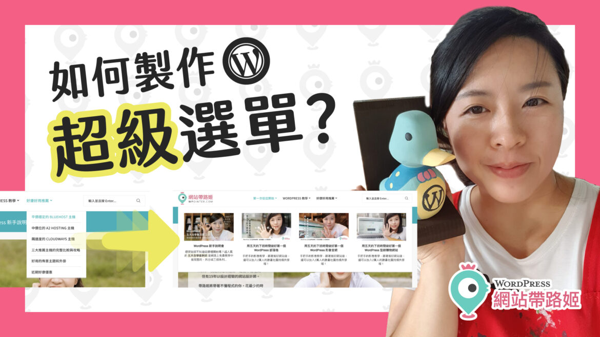WordPress預設的下拉選單只能放置文字連結,如果你希望電腦版的下拉選單可以更吸睛一點,除了文字連結外,還可以放漂亮的圖片、影片、地圖、按鈕等等,就一定要來認識 WordPress世界裡的超級選單(Mega Menu)!